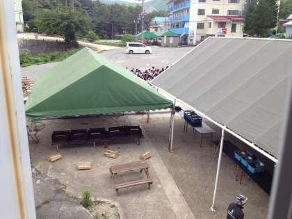 朝の気温は、とても涼しく過ごしやすい天気です。子ども達は、山登りから帰って来て、飯ごうすいさん(カレーライス作り)を始めます。 12:29