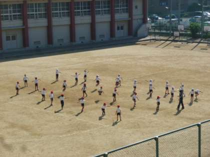 国語の授業と体育の授業の様子です。