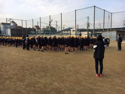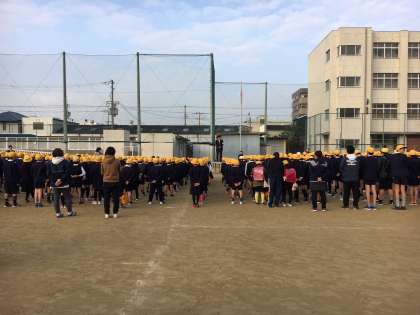 児童朝会では校長先生より、阪神淡路大震災についてのお話と姿勢についてのお話がありました。