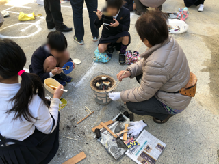 昔のくらし(七輪体験)3年生