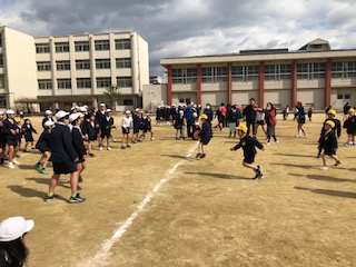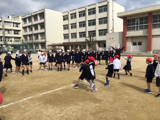 1年生と6年生がドッジボールで交流しました。1年生は全力で立ち向かっていました。それを優しく受け止め、接している6年生の姿が微笑しかったです。
