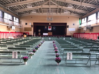 卒業式の準備ができました。卒業生は予行なしの本番となります。本日、卒業生のサポートできるように教職員だけで予行を実施しました。