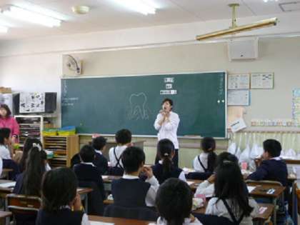 教室で、歯について学んでいる様子です。