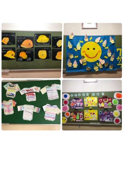 児童の作品が階段の踊り場に掲示されています。教室にも素敵な作品が掲示されています。