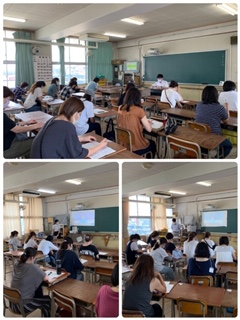猛暑の中、3蜜を避けるために双方向通信機能を活用し、3教室に分かれて修学旅行保護者説明会を行いました。2学期に児童へ事前指導を行います。