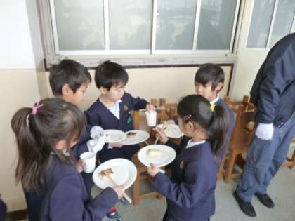 七輪で火をおこし、焼いたおもちを美味しそうに食べていました。
