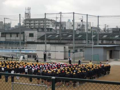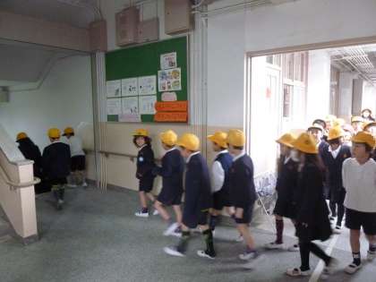 まず、地震でひとまず、机の下に入り、揺れがおさまったら運動場に避難しました。