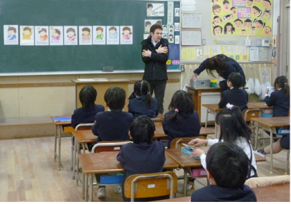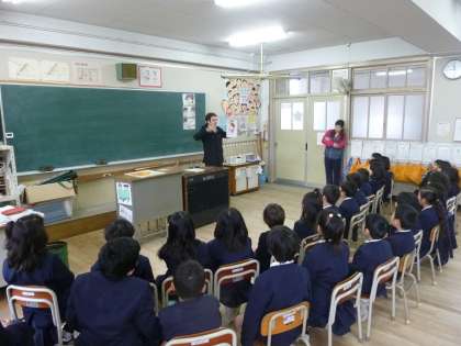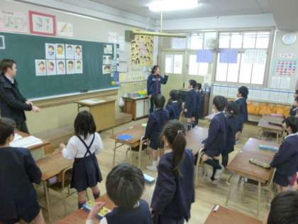 ネィティブスピーカーの先生の英語の授業がありました。気持ちを表す言葉を学習しました。ジェスチャーをしながら楽しく学びました。