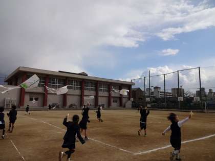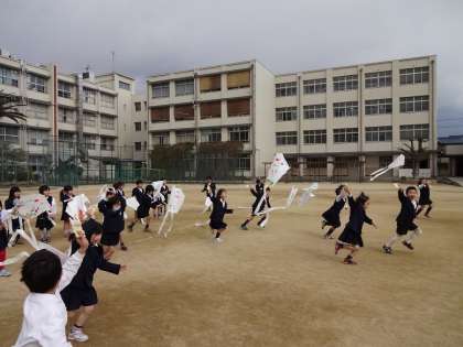 図画工作の時間に大きくはっきりとした絵を描き、生活科の時間に仲良く協力して、あげました。