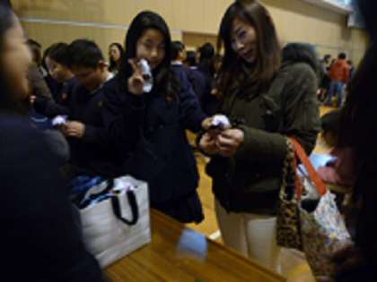 6年の学年交流会の様子です。感謝の気持ちでコサージュを作りました。