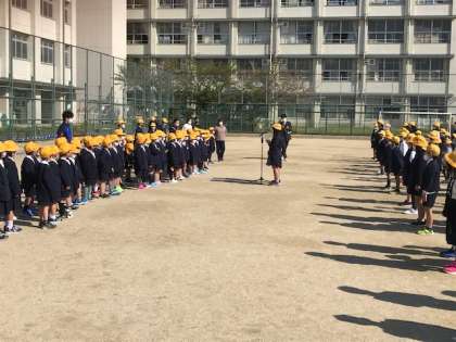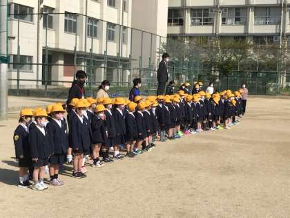 校長先生・在校生のあいさつの後、1年生全員での声をそろえてのあいさつもしっかり言えました。