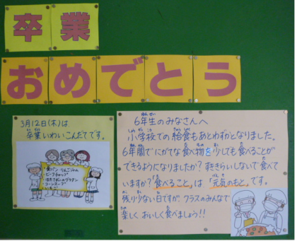職員室横の「食育の掲示板」です。