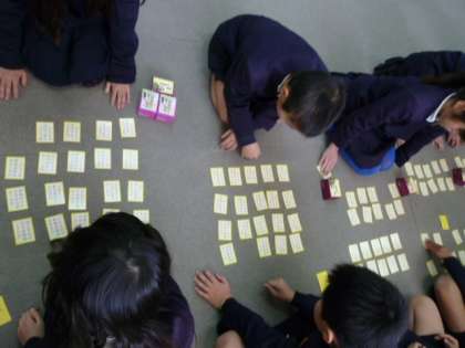 4年生が学年交流会で行った「五色百人一首」が広まっています。