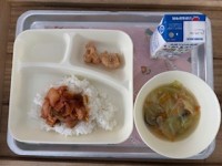 鶏肉、ウインナーとたまねぎ、ピーマン、にんじんなどの野菜がたっぷりのスパゲッティです。こどもたちに好評な献立です。