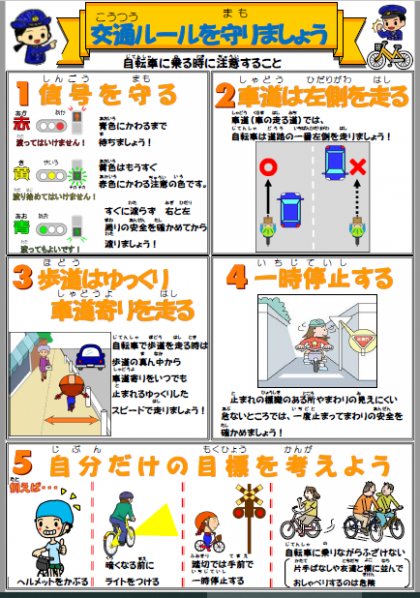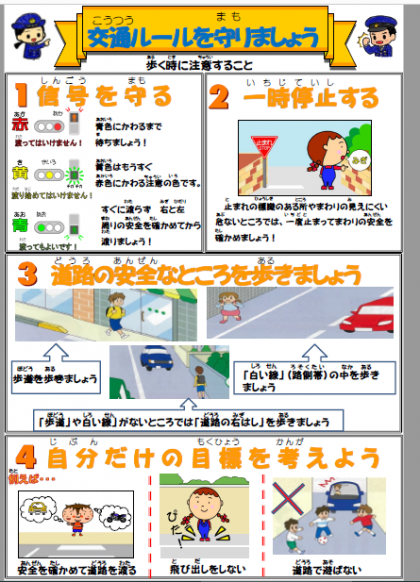 しばらくの間暑い日が続きますが、屋外での注意力がおろそかにならないよう、交通ルールを守り、絶対に事故にあわないようにしましょう。