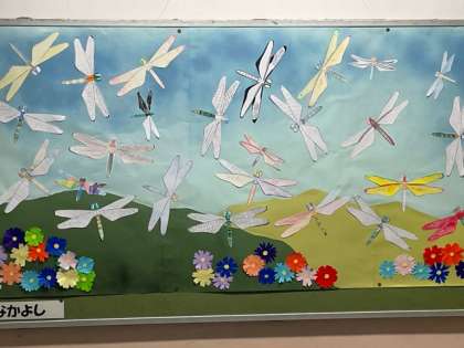 みんなで作ったトンボが9月の掲示になりました。
