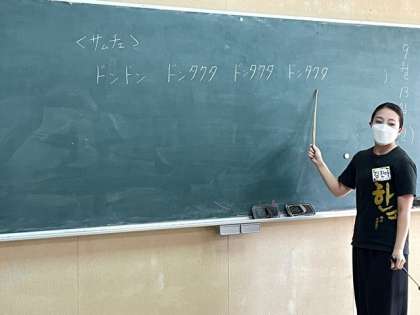 ソンセムニンがチャンゴをたたき