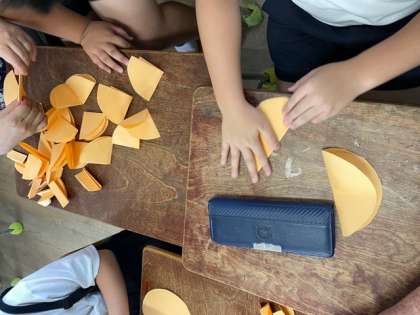 みんなで力を合わせて掲示づくり