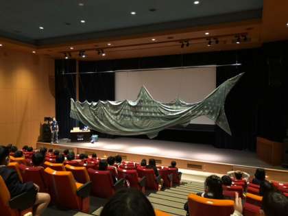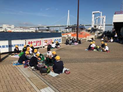 お弁当を食べた後、海遊館ホールでジンベイザメについて学習をしました。