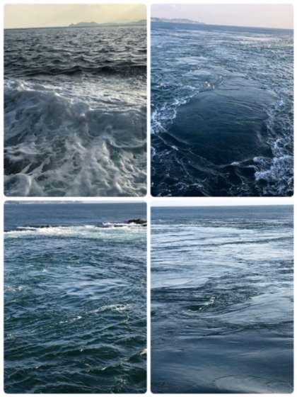 うずしおクルーズで自然の力がつくりあげる「鳴門海峡の渦潮」を見ることができました。海から湧き上がる「渦のはな」にも驚いていました。