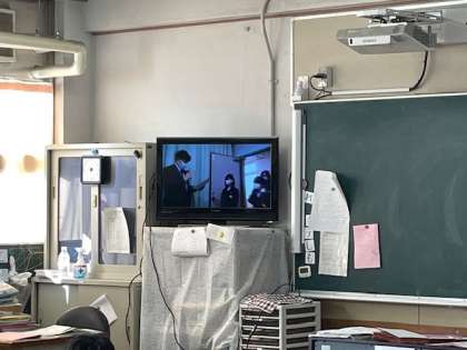 テレビを通して行いました。