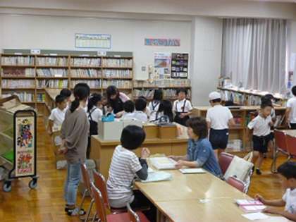 木曜日、お昼の休憩時間に図書ボランティアの方々と図書委員の子どもたちで図書館開放をしています。