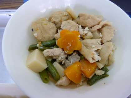 また、「含め煮」の中の人参に花型が・・・・・入っていた子どももいたようです。給食調理員さんの細やかな心遣いです。花型が入っていた子どもは、ラッキー・・・・