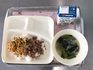 献立は「ビビンバ・トック・牛乳」です。