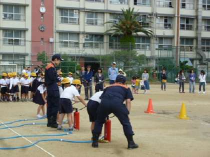 3年生は、水消火器体験をしました。
