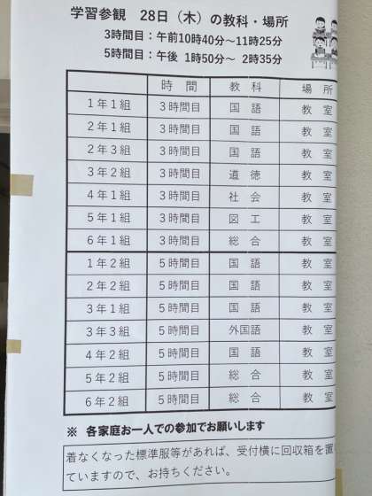 本日は学習参観です。