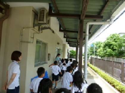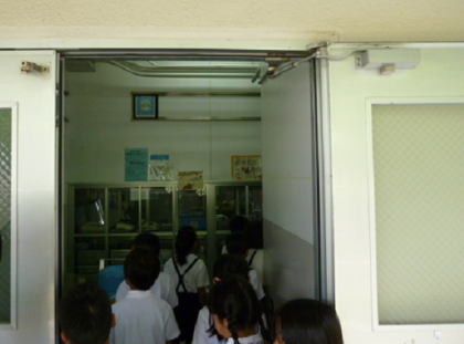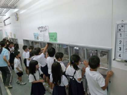 大きなお鍋に、大きなおしゃもじ・・・・、給食調理員さんが給食を作っている様子をじっと見学していました。