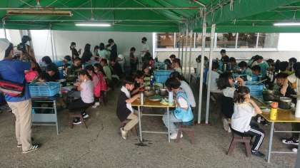 みんなで役割分担しておいしいカレーとご飯ができました。各班、自分達で作ったカレーに大満足です。