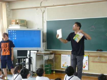 NS(ネィティブスピーカー)の発音を聞いて、子どもたちもしっかり発音していました。
