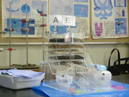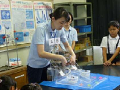 模型を使った実験はとても具体的で、子どもたちは目を輝かせて話を聞いていました。