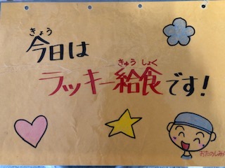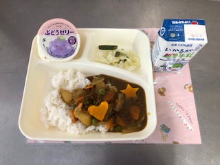 今日は星型やハート型に切ったラッキーにんじんが入った、ラッキー給食です。