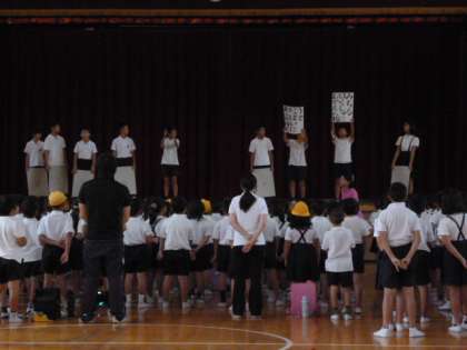 今日は、音楽集会でした。「運動会の歌」の練習をしました。