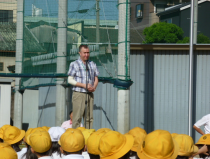 その後、外国語活動(英語)を教えに来ていただいているJ先生の紹介がありました。