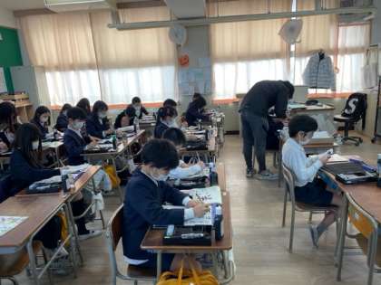 4年生では、書初めを