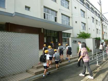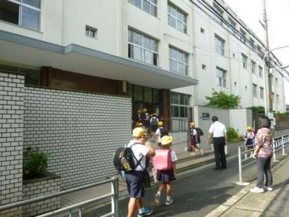 昨日の児童朝会のお話を聞いて、あいさつをしています。