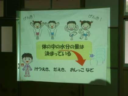 養護教諭の先生のお話を聞いてから、発育測定をしました。
