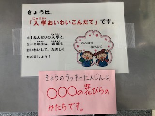 1年生の入学と2〜6年生の進級をお祝いしておいしくいただきました。