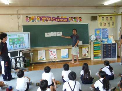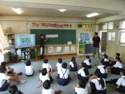 ネイティブスピーカーの先生、担任の先生、TTの先生も加わり、楽しい授業が展開されています。
