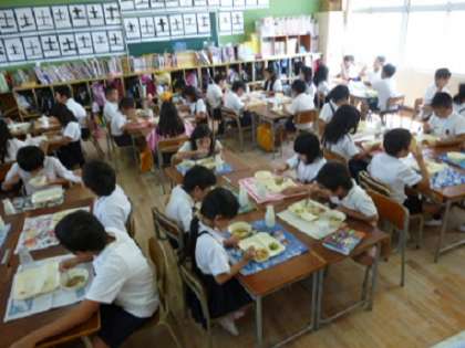 みんな、もりもり食べています。今日の新しいメニュー「ひきわり大豆」も好評です。