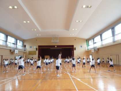 エイサーの音楽が講堂から聞こえてきました。