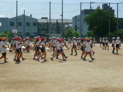 エイサーは、沖縄の盆踊りです。「亡くなった人、よくいらっしゃいました。また、来年も来てね」という思いをこめます。かけ声と板太鼓で元気よく踊っています。