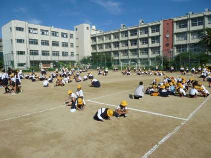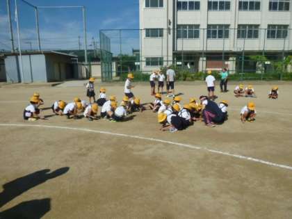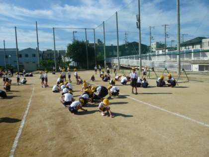 校長先生のお話の後、美化委員会による石拾い朝会がありました。1年生〜6年生、みんなで、運動場の小石を拾って運動会の練習に取り組みます。