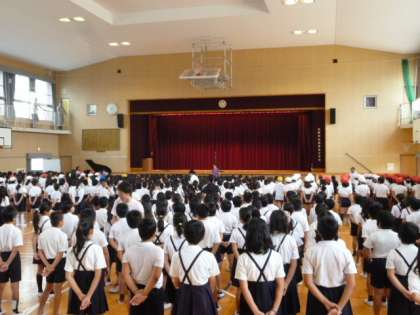 今日の児童集会は、音楽集会でした。運動会で歌う曲を練習しました。