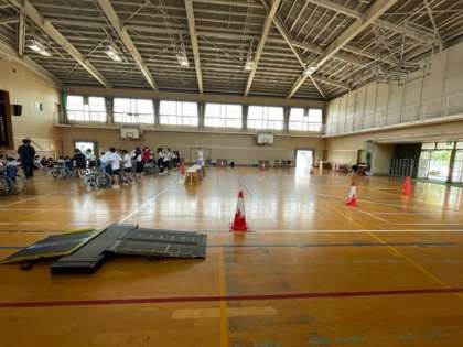 体育館でコースをまわり