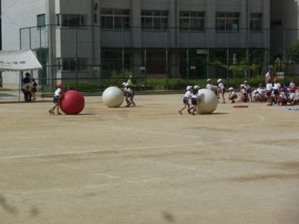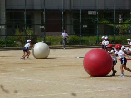 大玉ころりん(大玉転がし)の練習をしました。