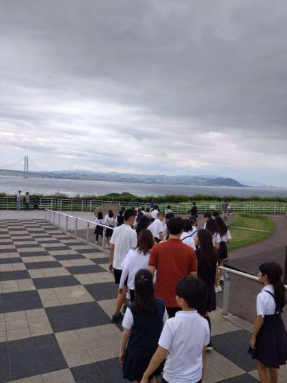 明石大橋を渡り淡路島に入りました。淡路SAで記念撮影とトイレ休憩です。